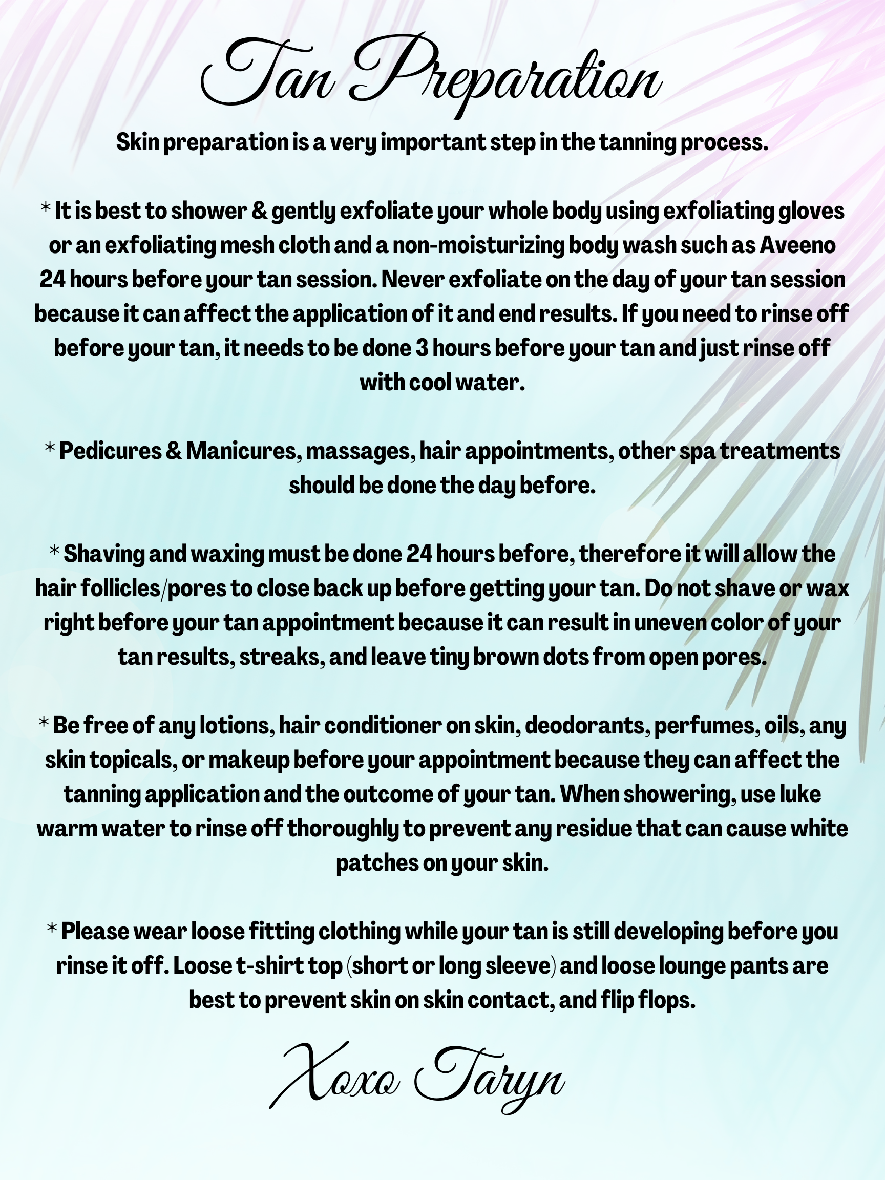 For a flawless tan, apply Island Sun evenly in a circular motion to all areas of the skin you wish to have tanned. Apply lightly to the elbows, knees, wrists and ankles. When applying to the face, blend product into the hairline and avoid contact to lips and eyes. For best results, allow 6-8 hours before showering or coming into contact with water and you will have a beautiful natural looking tan that will last 7 -14 days. No mess or feeling sticky so you are free to go about your day and not have to worry about your tan. Hand wash the mitt gently with warm water and allow to air dry.